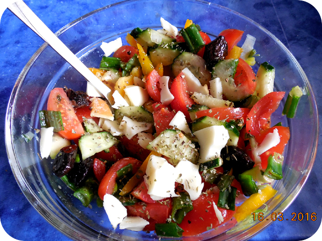 Seara ma gandesc sa fac o salata de rosii si castraveti cu ceapa verde, masline si branza presarata pe deasupra. Pentru ca… #salatate 🙂