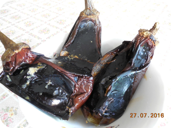La pranz mi-am pregatit salata de vinete facuta in casa si oua ochiuri. Ochiurile sunt fara prajeala, adica daca tot ne tinem de dieta le-am preparat direct in tigaie, fara ulei.